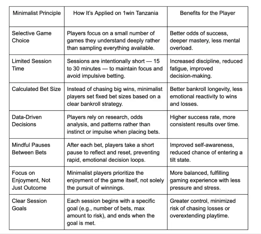 Here’s how players are applying the principles of minimalism to enhance their experience on 1win Tanzania: