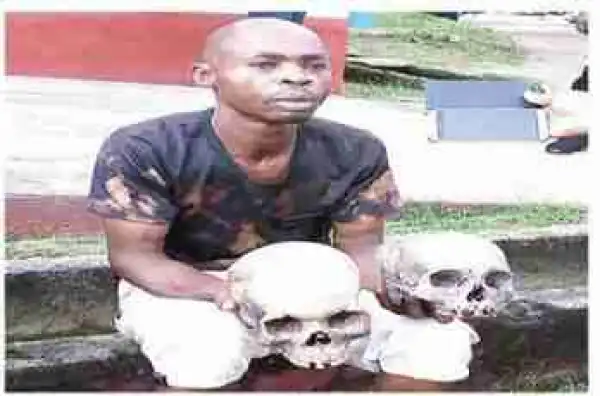 'Police Have No Right To Arrest Me' - Man Caught With 2 Human Skulls (Photo)
